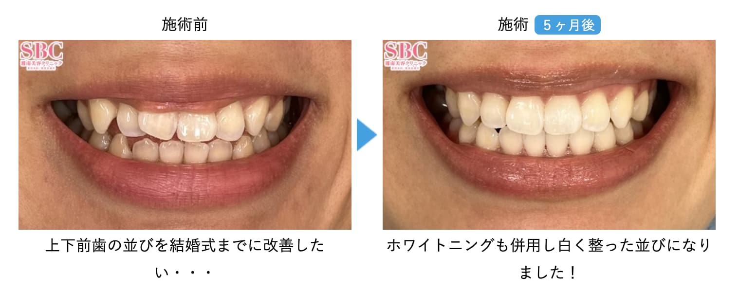 歯を大きく動かさないため、比較的短い期間で見た目の変化を目指せるのが特徴です。歯の色や形も同時に整えられるため、口元全体のバランスをきれいに見せたい方に選ばれています。