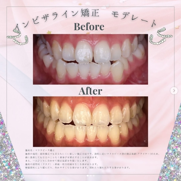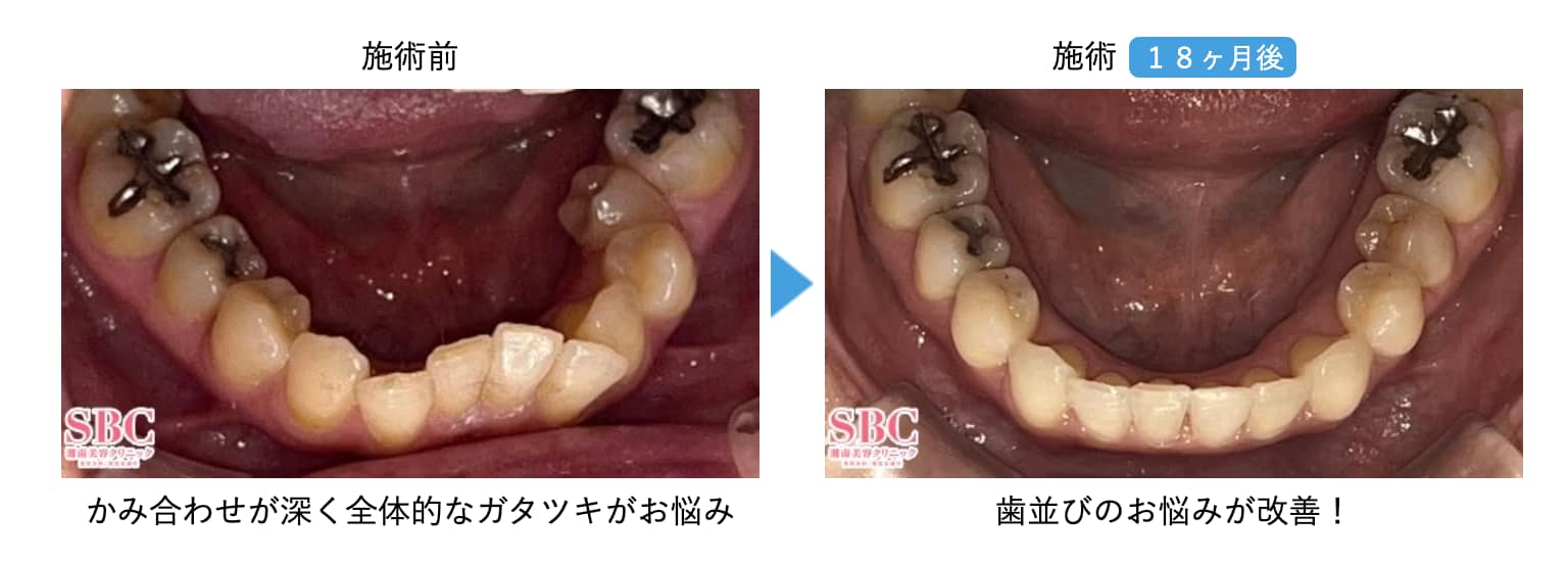 装置が目立ちにくく取り外しができるため、日常生活への負担を抑えながら進められるのが特徴です。見た目だけでなく、噛み合わせまで整えたい方に選ばれています。