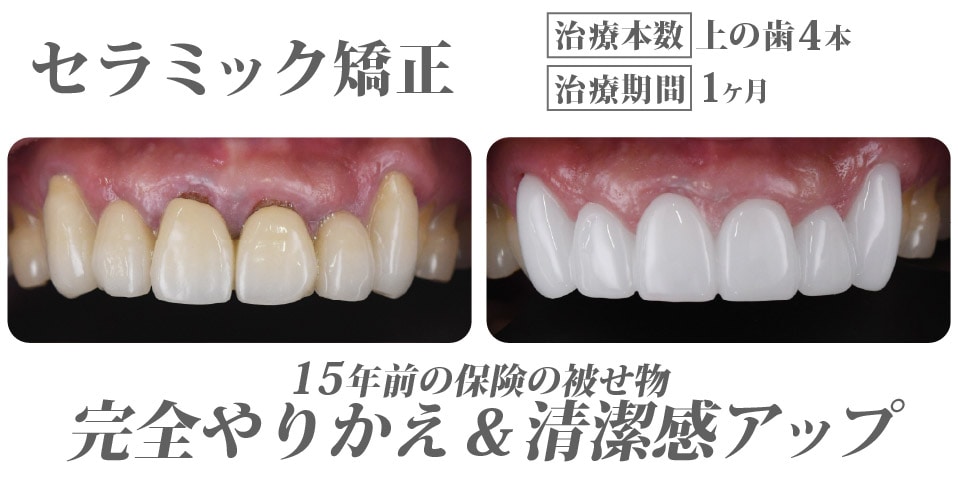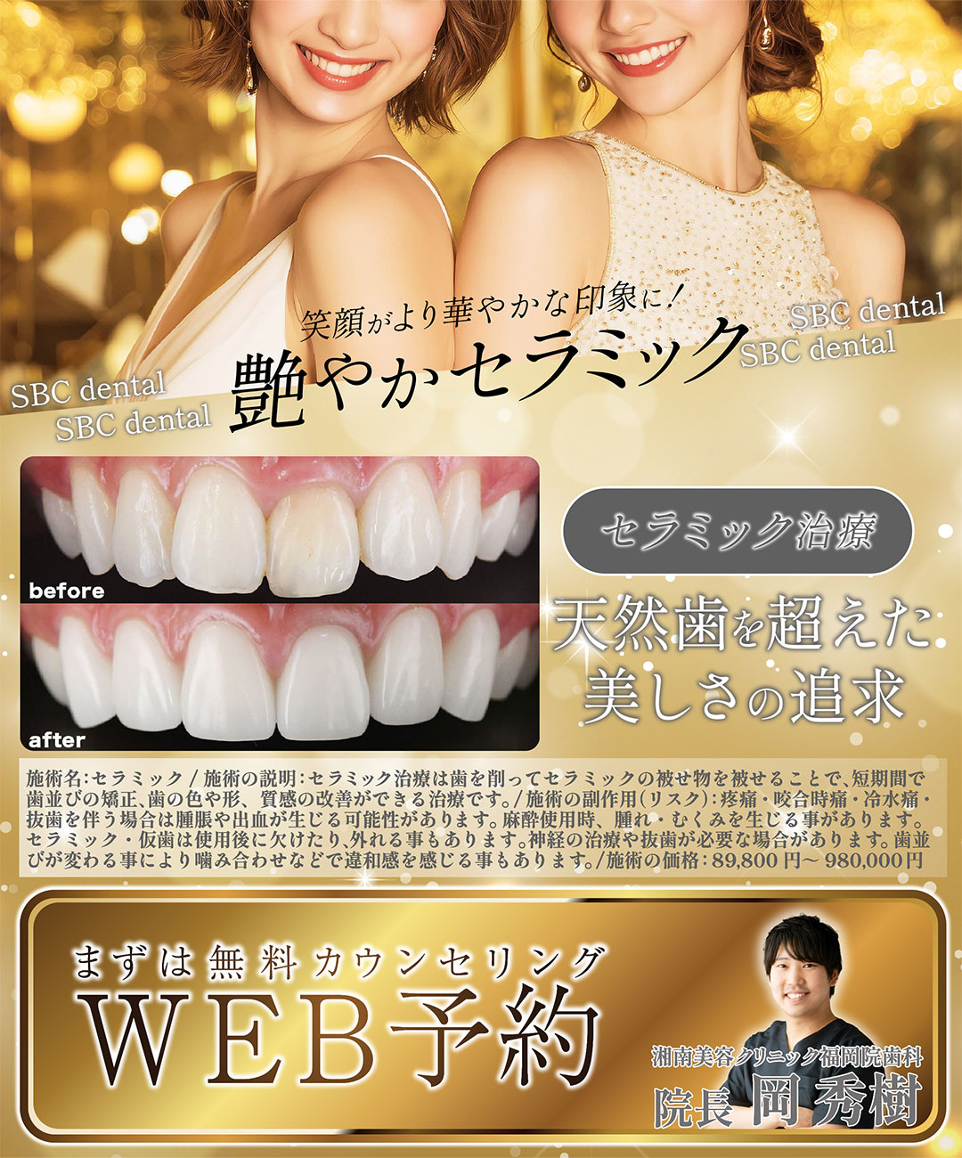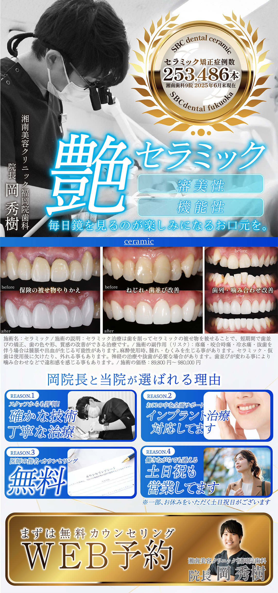 どの治療法で矯正するかによって異なります。セラミック矯正は1本29,800円~となり、セラミックの種類によっても金額差がございます。マウスピース矯正ではどの程度の範囲をご希望されるのかによるため、医師にご相談ください。