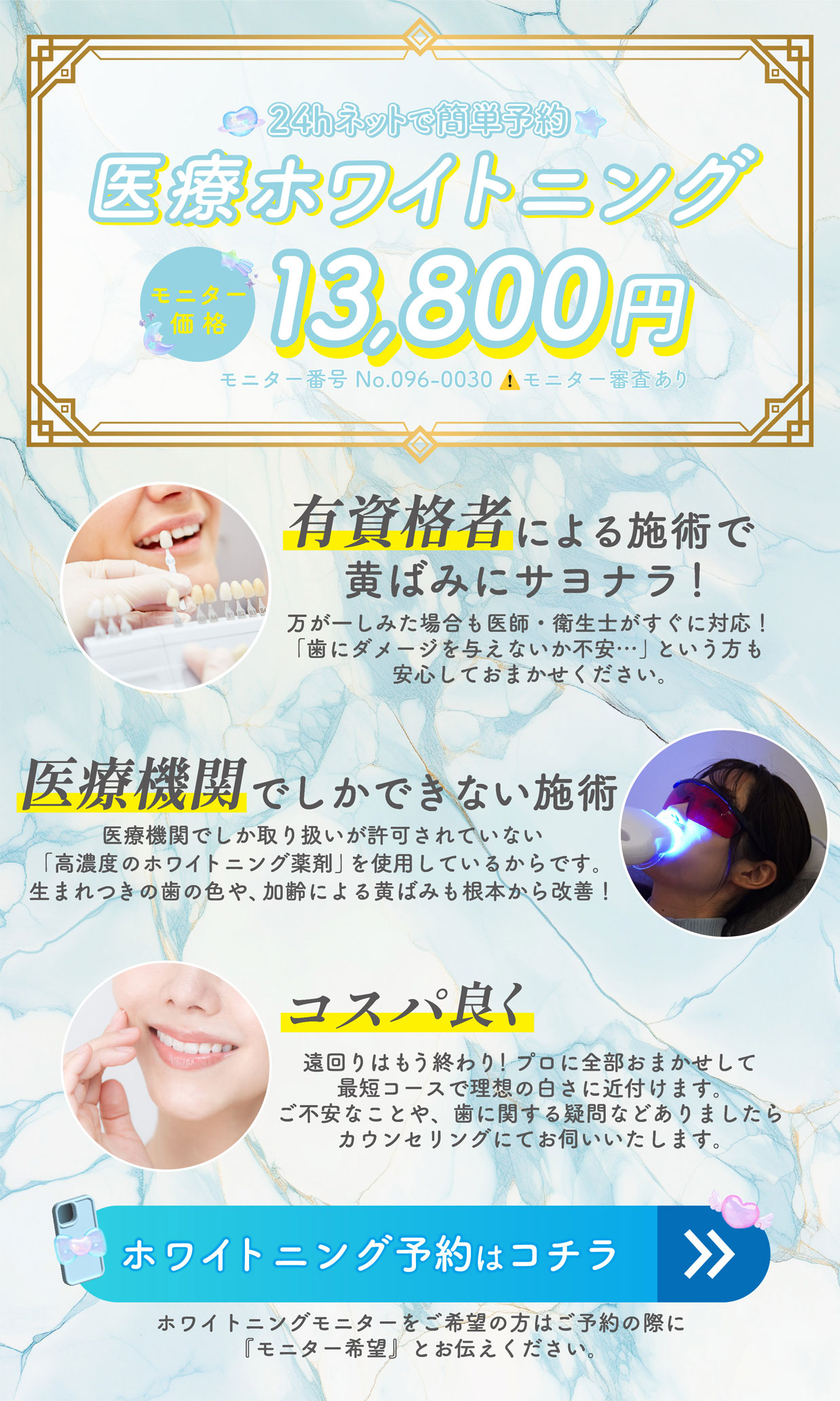 ひどい虫歯や歯周病が見られる方は、治療を優先いただいております。また妊娠中、授乳中の方など一部ホワイトニングをお受けいただけない方もいらっしゃいます。
