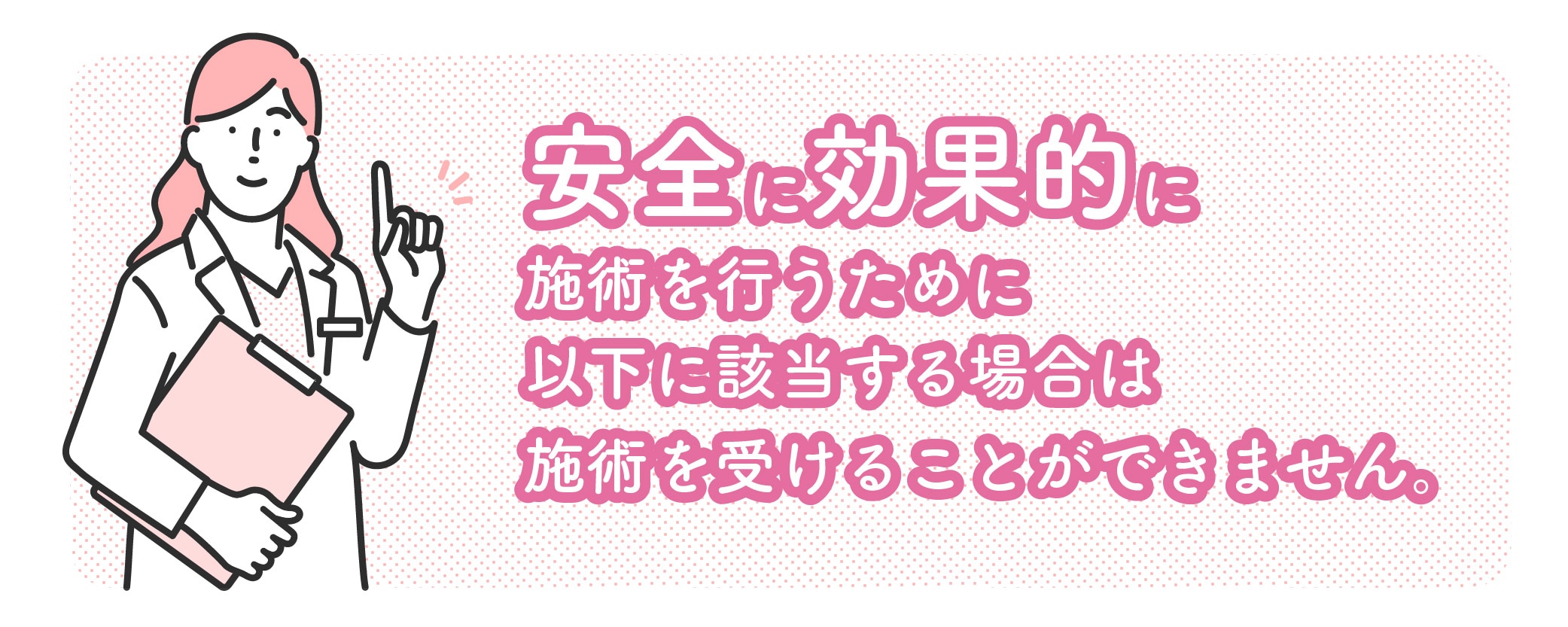 安全に、そして効果的に施術を行うために以下に該当する場合は施術を受けることができません。