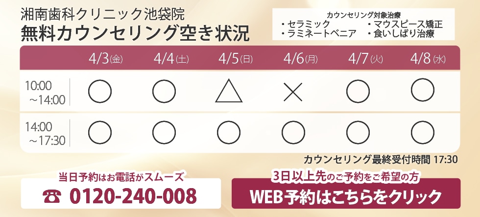 歯についてお悩みがありましたら、ぜひ一度、湘南美容歯科池袋院にご相談ください。
