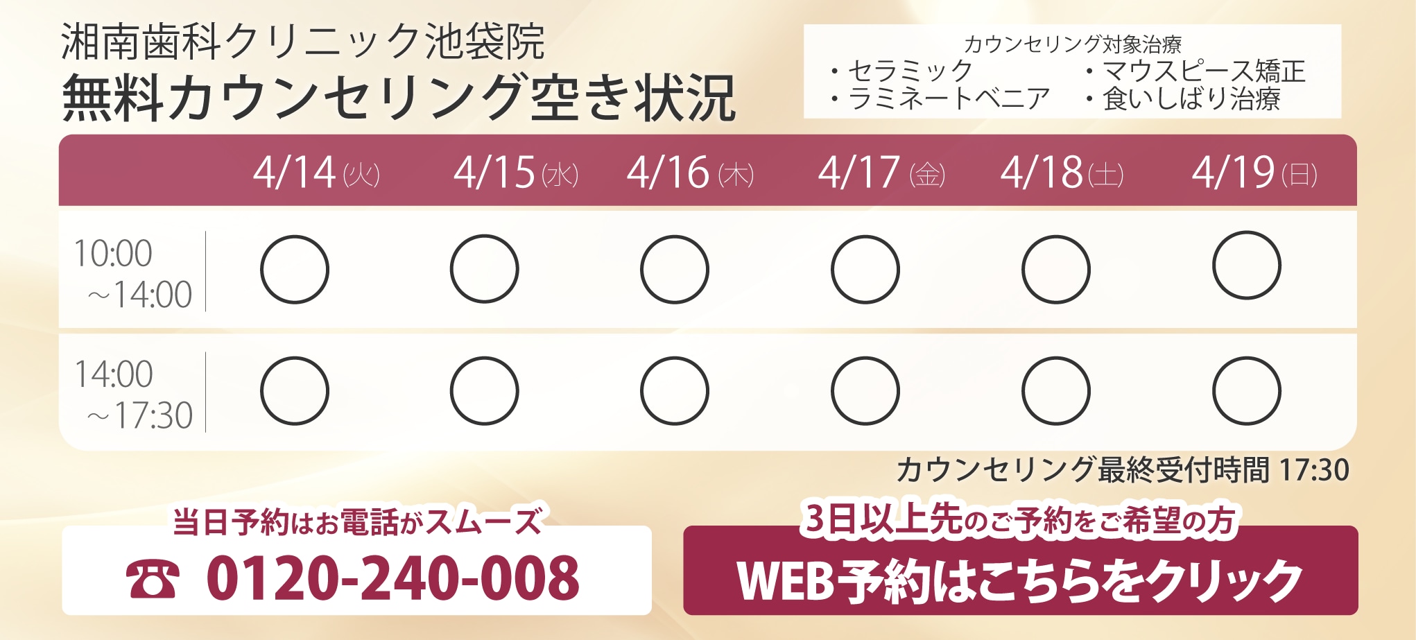 直近のお日にちをご希望の場合、お電話にてご予約を承ります☎️