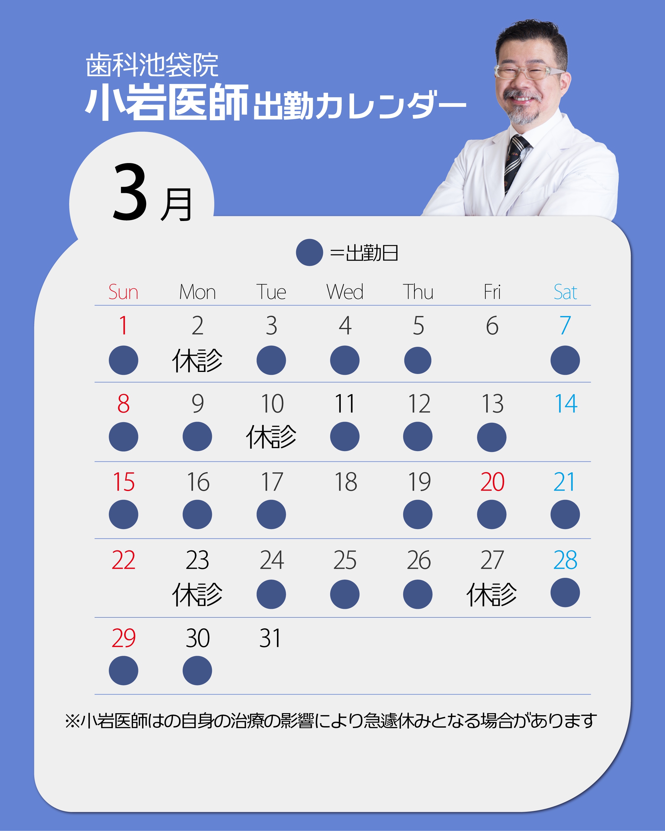 小岩医師は病状により出勤の日程が変更になる場合がございます。