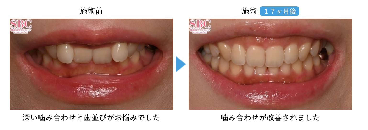過蓋咬合のような噛み合わせの深さにも対応でき、口元全体のバランスを整えていきます。ここでは池袋院で行った過蓋咬合の症例写真をご紹介します。