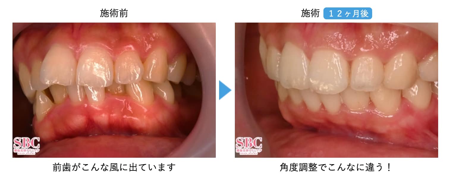 セラミック治療では、歯の長さや形、角度を補綴物で調整することで、前歯の噛み合わせの深さを緩和し、口元の印象を整えられます。比較的短期間で目指せるのが特徴です。