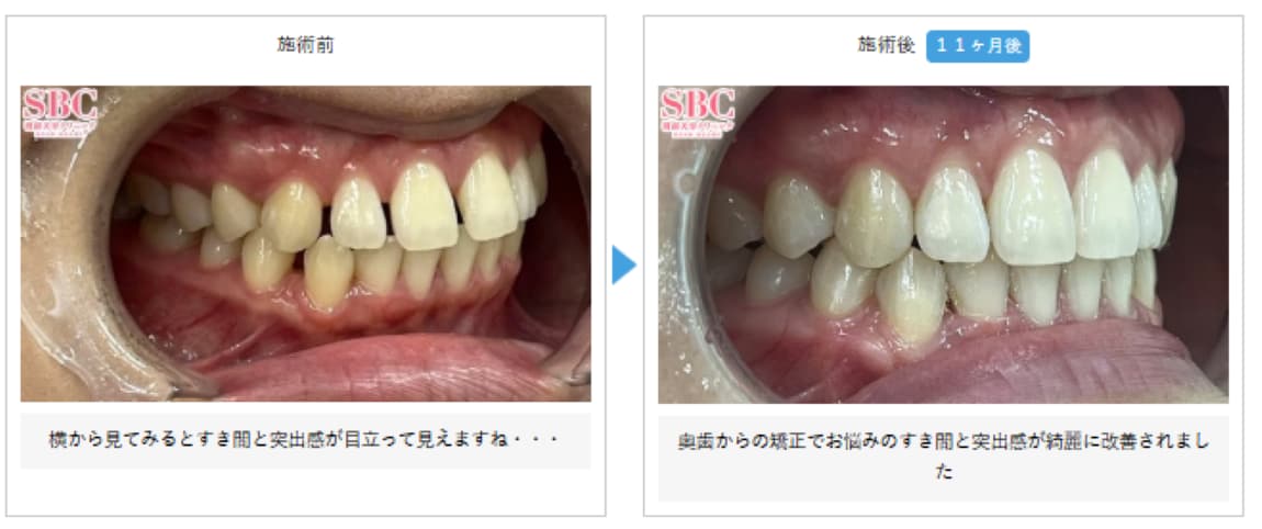 口を開けたときに目立つ「前歯のすきっ歯」が気になる方に、口元の印象を整えやすい治療法です。平均治療期間は約4ヵ月~6ヵ月程度です。