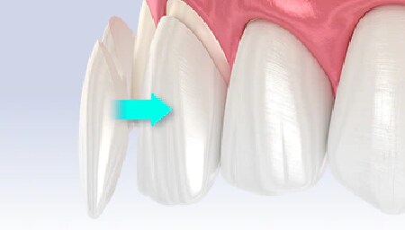ラミネートベニアは、0.3〜0.7mmほどの薄いセラミックを歯の表面に貼り付けて歯の悩みを改善する審美歯科治療です。