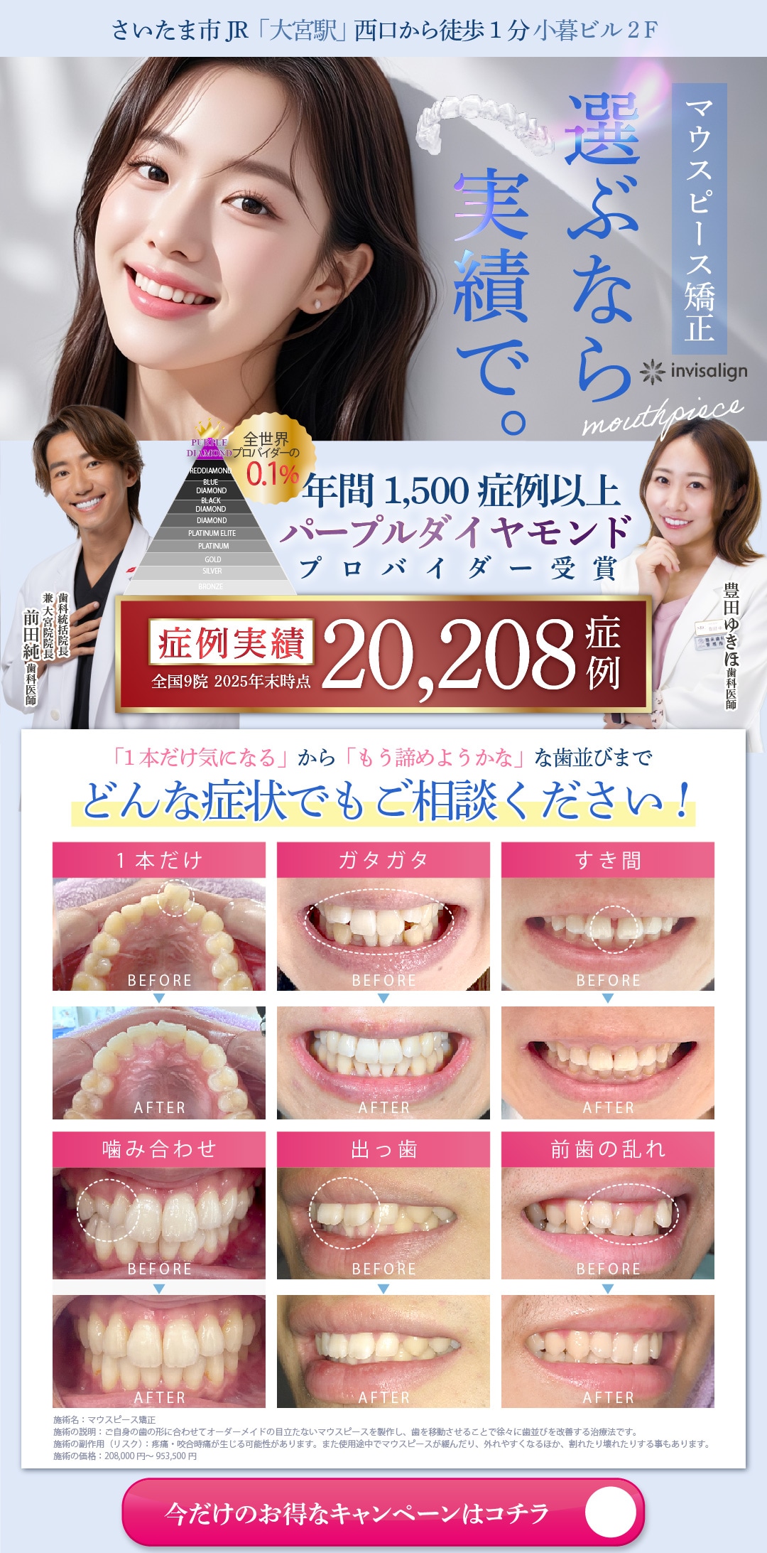 湘南歯科は年間1500症例以上の実績がある『パープルダイヤモンド』の認定を受けています。これは、よくある症例だけでなく、難しいケースも数多く解決してきた証です。