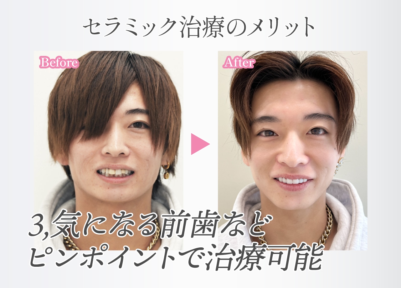 審美性の高いセラミッククラウンは、前歯を治したい、気になる2本〜3本だけ治したいという方にもにおすすめです。