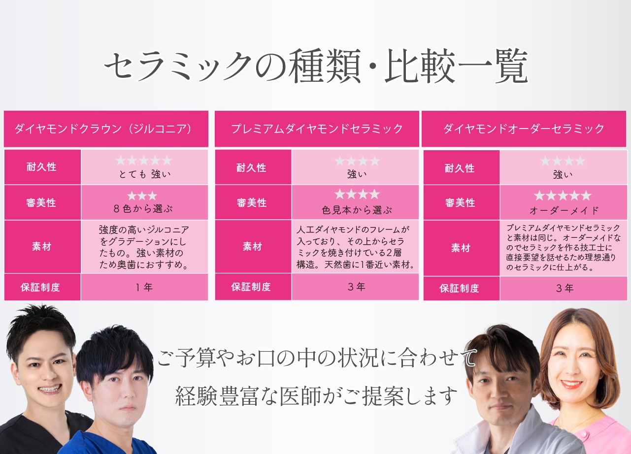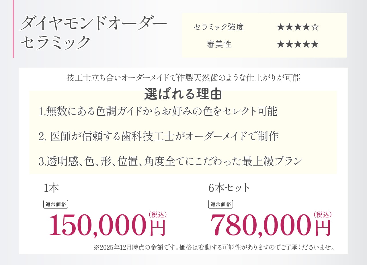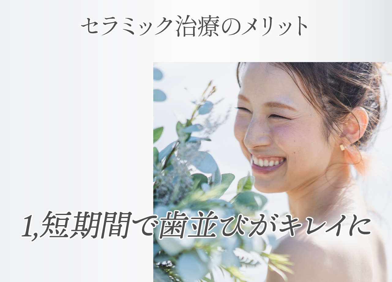 ワイヤーによる矯正が平均2年以上かかるのに対し、セラミックは平均3か月程と治療が数か月で完了することが多いです。