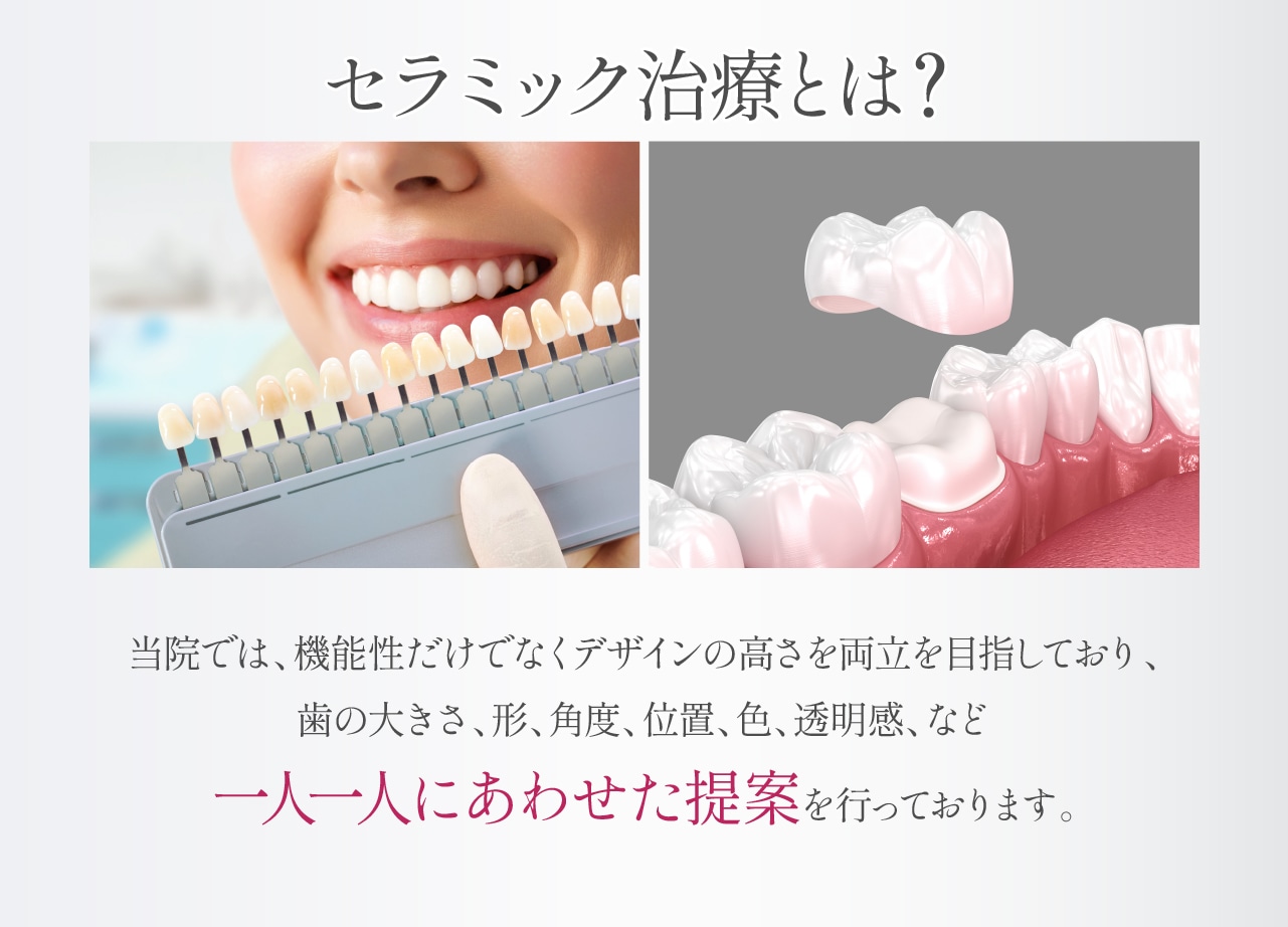 当クリニックは単なる見た目だけの治療ではなく、歯の長期的健康を見据えたセラミック治療を行っております。