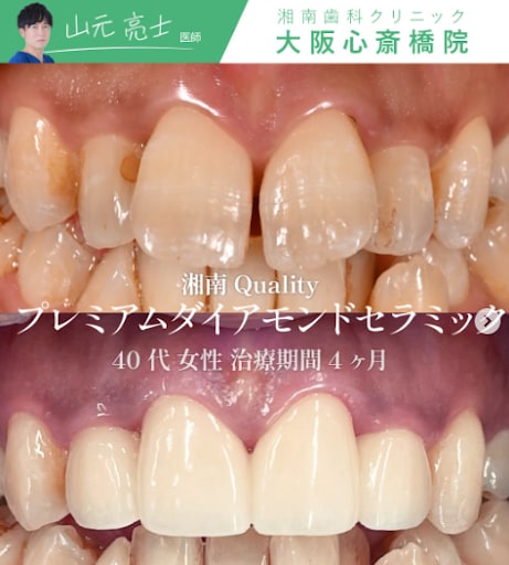 湘南美容歯科大阪心斎橋院では、短期間で口元を整えるセラミック治療と、歯並びを根本から改善するマウスピース矯正を行っております。
