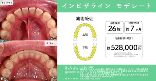 「インビザラインモデレート」は、やや目立つすきっ歯や歯並びの乱れを整え、横顔を含めた口元のバランスも重視したい方に適したプランです。約8〜10か月かけて歯列全体を段階的に整え、Eラインにも配慮した自然で美しい口元を目指します。