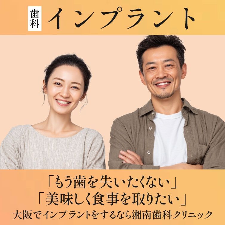 インプラントを大阪でおこなうなら湘南美容歯科大阪心斎橋院へ。心斎橋・なんば駅近くの好アクセスで、インプラント治療だけでなくセラミック矯正やマウスピース矯正、目立たない美容入れ歯などを豊富にご用意。無料カウンセリングと精密検査で一人ひとりに最適な治療プランをご提案します。