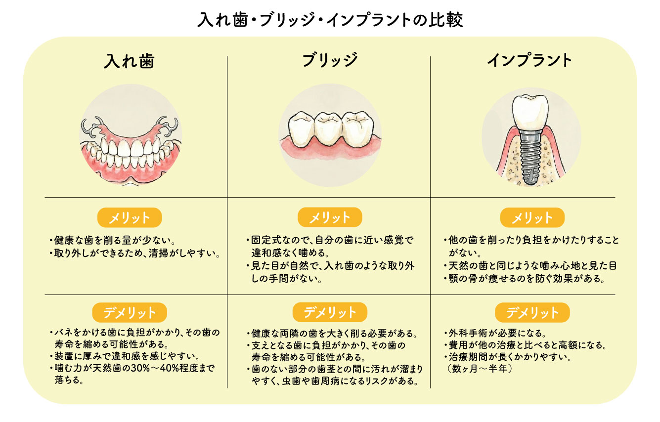 ブリッジ・入れ歯との比較:なぜインプラントなのか?