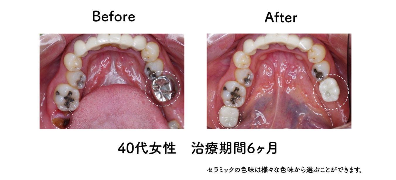 当院ではただ歯を作るだけでなく、周りの歯と調和する「美しさ」を重視しています。お客様のご要望や本来の歯の色味に合わせて、技工所と連携しセラミックの被せ物を作製します。機能性はもちろん、笑顔に自信が持てるような「見た目の美しさ」を最優先に考えた治療をご提案します。