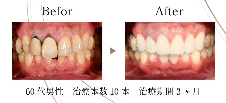 上の歯6本、下の歯4本の計10本をセラミックにしています。