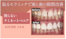 歯を削ることなく、薄いセラミック製の板を歯の表面に貼り付けることで、隙間を埋めることができます。