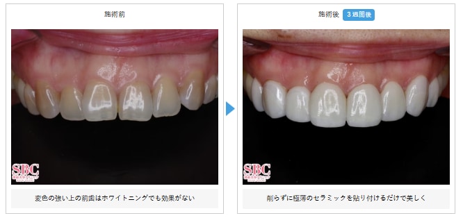 また、ホワイトニングでは白くならない歯(テトラサイクリン歯・失活歯等)の方が歯を白くしたい時に有効な治療法です。