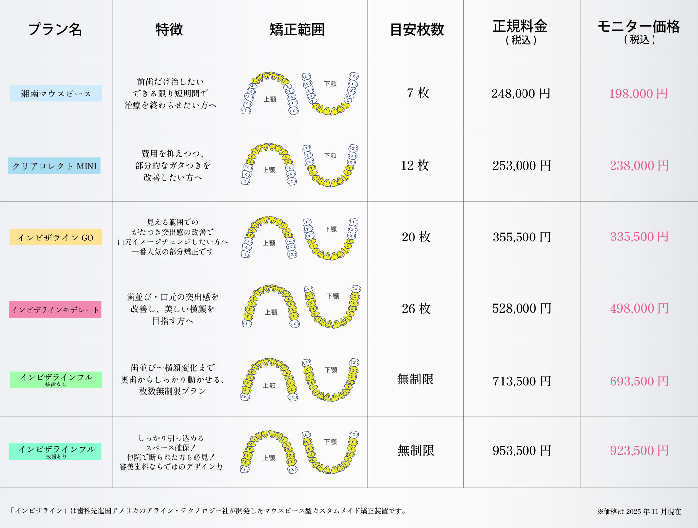 湘南美容歯科のマウスピース矯正はさまざまなプランを用意しておりますので、お客様一人一人に合ったプランを選ぶことができます。