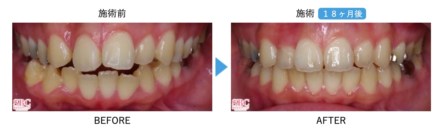 治療は、5ヵ月〜8ヵ月程度を目安に歯並びの改善を目指せます。前歯の印象改善や軽い受け口の調整に、選択肢の一つとして検討されることが多い治療法です。