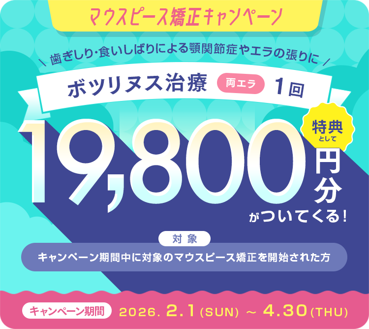 顎の骨への外科手術を要するほど重度の場合は、マウスピース矯正で矯正することはできません。比較的軽度であれば矯正をおこなうことで顎関節症や受け口を改善できます。
