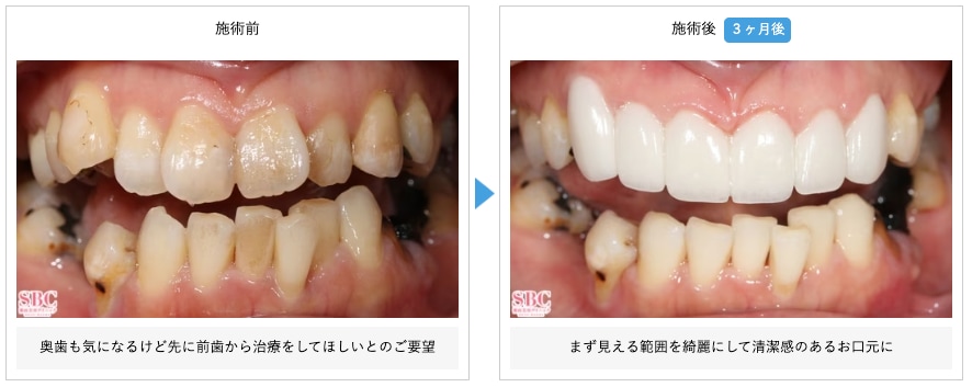 歯の状態や虫歯の程度に応じて抜歯は必要ですが、治療法によっては歯をできるだけ残しながら美しく仕上げることも可能です。