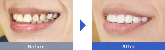 重度の変色や、ホワイトニングで十分な白さが得られない場合は、ラミネートベニアやセラミックの被せ物による治療が一般的です。